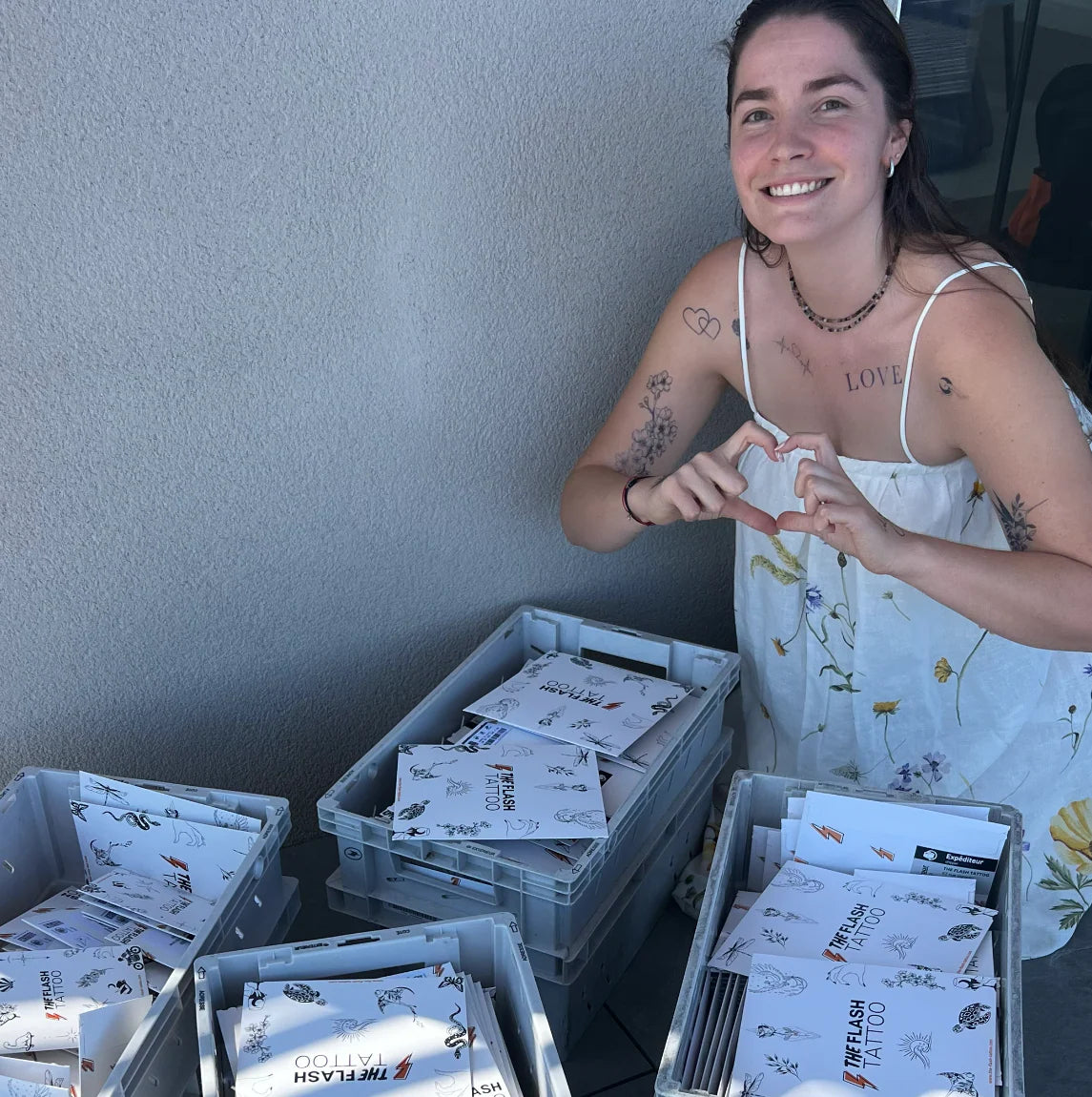Vandaag de dag vertrouwen meer dan 30.000 klanten ons en hebben ze onze creaties al op hun huid getatoeëerd, en dat is onze grootste bron van trots. De positieve meningen, de fotofeedback, de enthousiaste berichten... en zelfs de bezoeken aan de tatoeëerder voor de meest vastberadenen, na onze efemere tatoeages te hebben aanbeden, geven het project zijn volle betekenis!